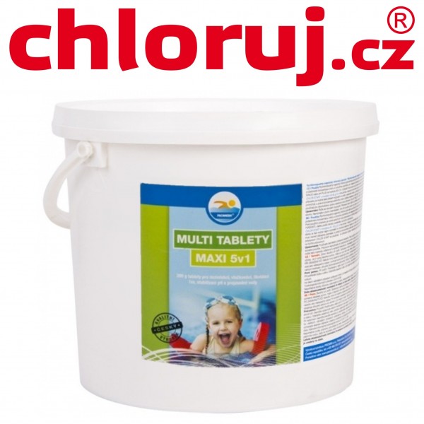 Pak se vloží do plováku nebo zásobníku tablet 1 ks MULTI TABLETY MAXI na 20-30 m3 vody v bazénu. Toto množství by mělo stačit na udržení potřebné koncentrace 0,3-0,5 mg/l aktivního chloru ve vodě na 5 až 10 dnů v závislosti na faktorech, které ovlivňují množství aktivního chloru ve vodě, jako jsou teplota vzduchu a vody, intenzita slunečního záření a zatížení bazénu. Kontrolu správné koncentrace aktivního chloru a pH je třeba provádět pravidelně vhodným testerem. Přípravek v sobě již obsahuje látky, které zabraňují růstu řas, přesto při případném výskytu řas je možné provést jednorázovou úpravu vody přípravkem CHLOR ŠOK dle návodu uvedeného na tomto přípravku.