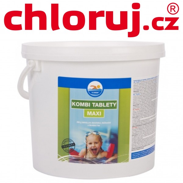Pak se vloží do plováku nebo zásobníku tablet 1 ks KOMBI TABLETY MAXI na 20-30 m3 vody v bazénu. Toto množství by mělo stačit na udržení potřebné koncentrace 0,3-0,5 mg/l aktivního chloru ve vodě na 5 až 10 dnů v závislosti na faktorech, které ovlivňují množství aktivního chloru ve vodě, jako jsou teplota vzduchu a vody, intenzita slunečního záření a zatížení bazénu. Kontrolu správné koncentrace aktivního chloru a pH je třeba provádět pravidelně vhodným testerem. Přípravek v sobě již obsahuje látky, které zabraňují růstu řas, přesto při případném výskytu řas je možné provést jednorázovou úpravu vody přípravkem CHLOR ŠOK dle návodu uvedeného na tomto přípravku.