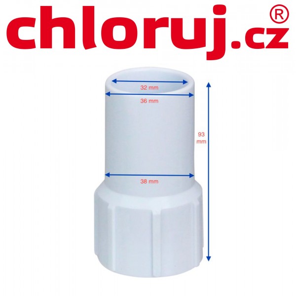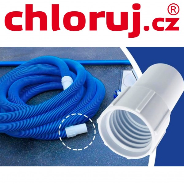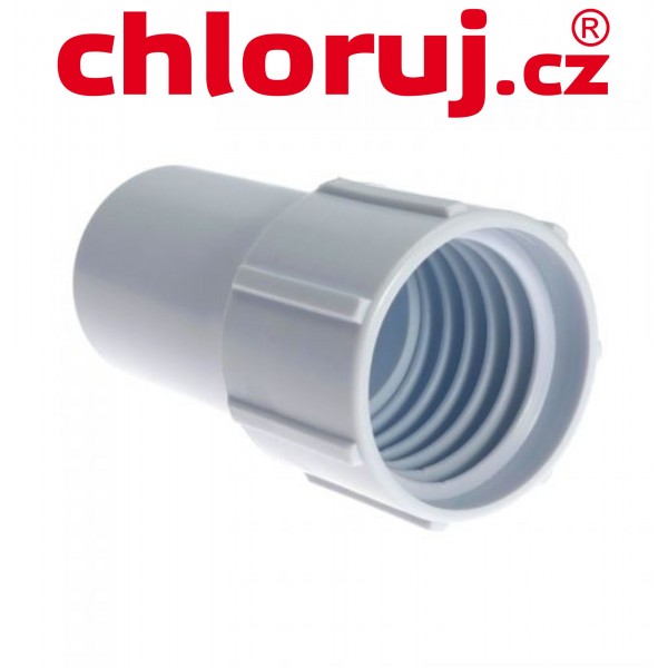 Plastová koncovka o délce 10 cm s vnitřním závitem pro nasazení na bazénovou hadice o průměru 32 mm.